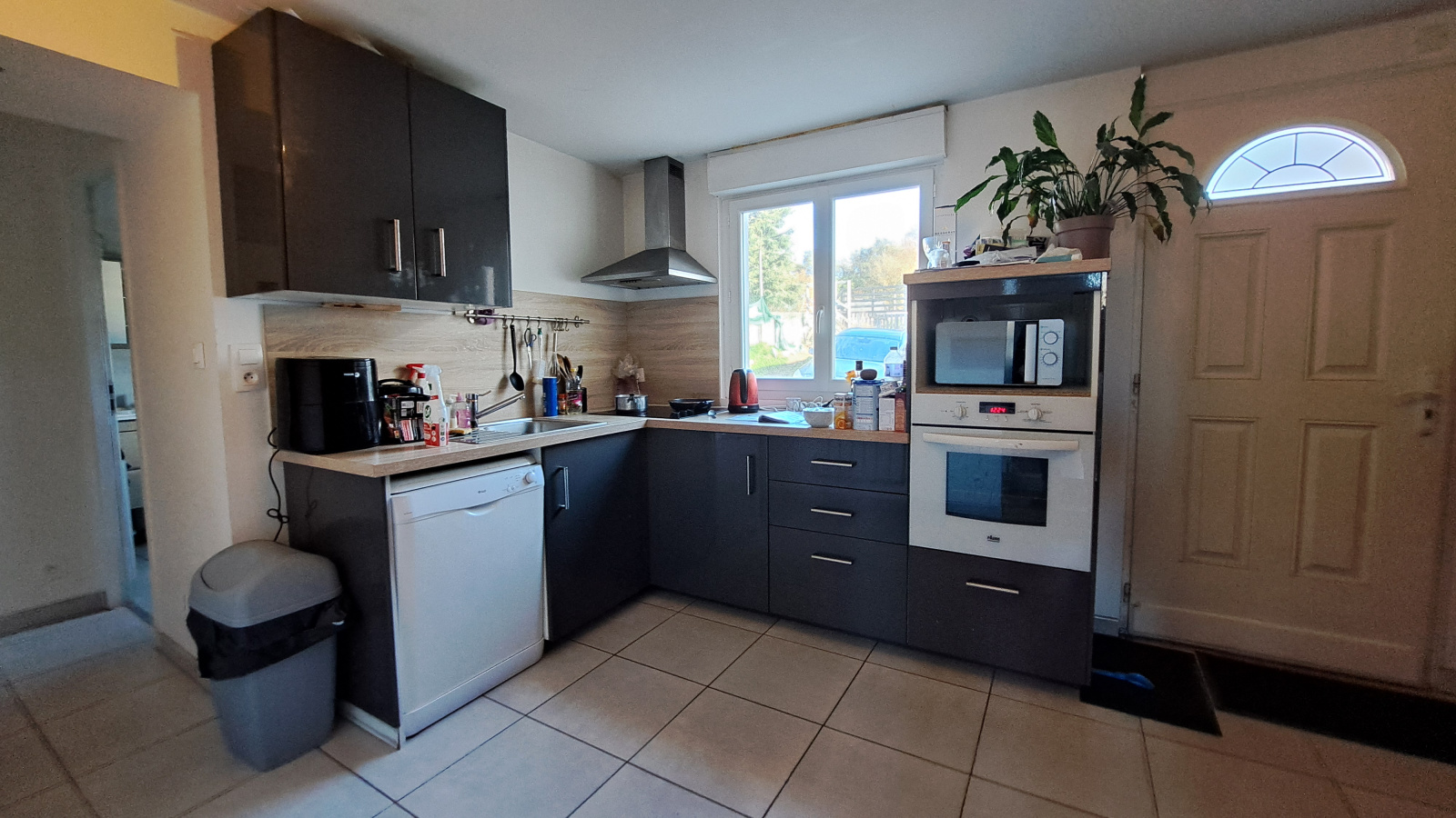 Cette maison dispose au RDC d'une entrée sur une cuisine aménagée et équipée, d'un séjour avec poele à bois, d'un cellier, d'une salle d'eau avec douche à l'italienne et d'un WC indépendant. Au 1er étage, la maison dispose de 2 chambres. Les menuiseries sont en PVC double vitrage et le chauffage est électrique individuel. Loyer de 570 € mensuel charges incluses, dépôt de garantie de 550 € et honoraires d'agence de 275 €.