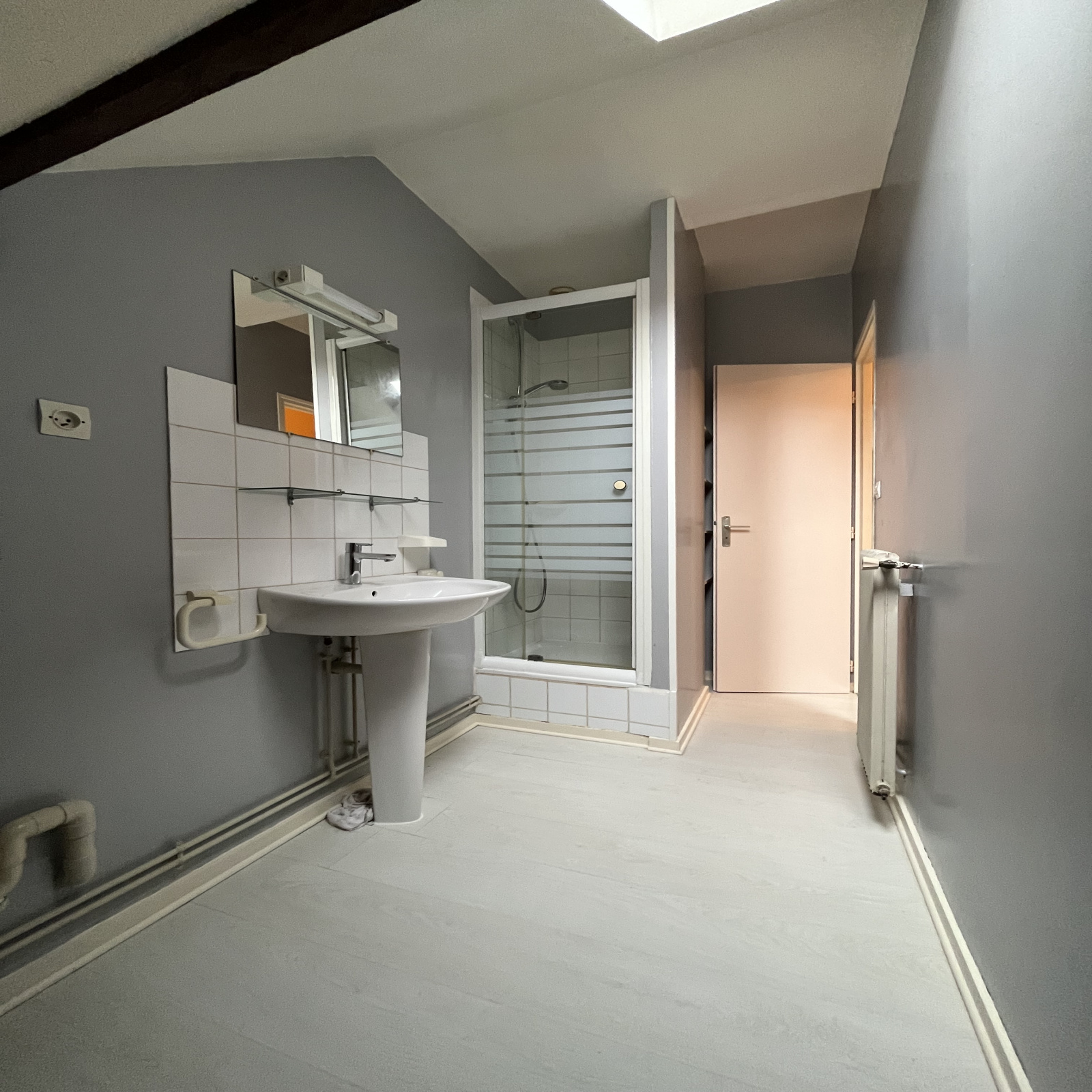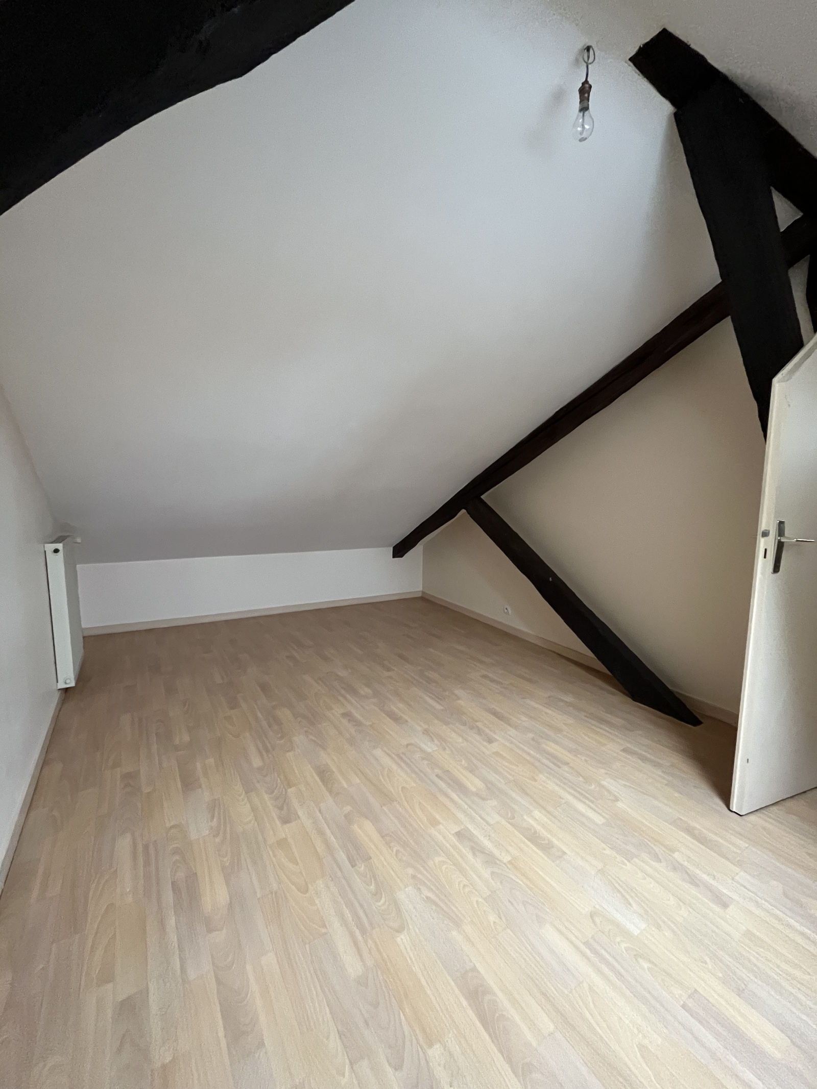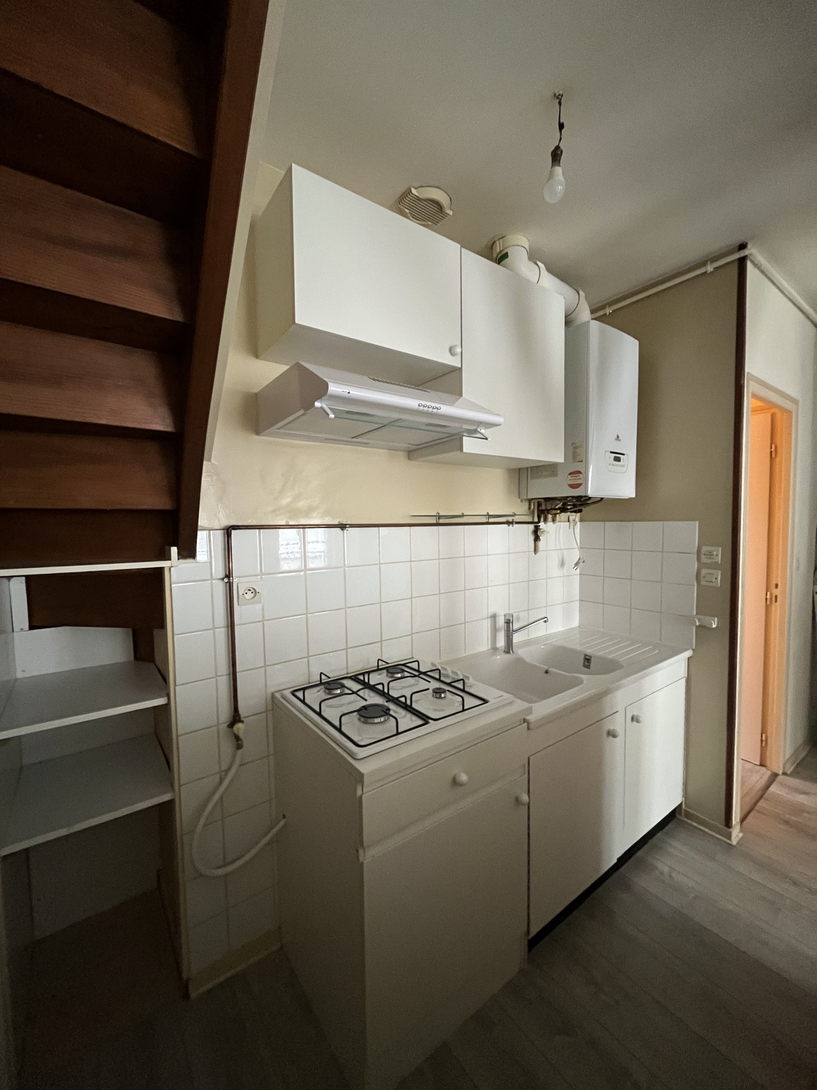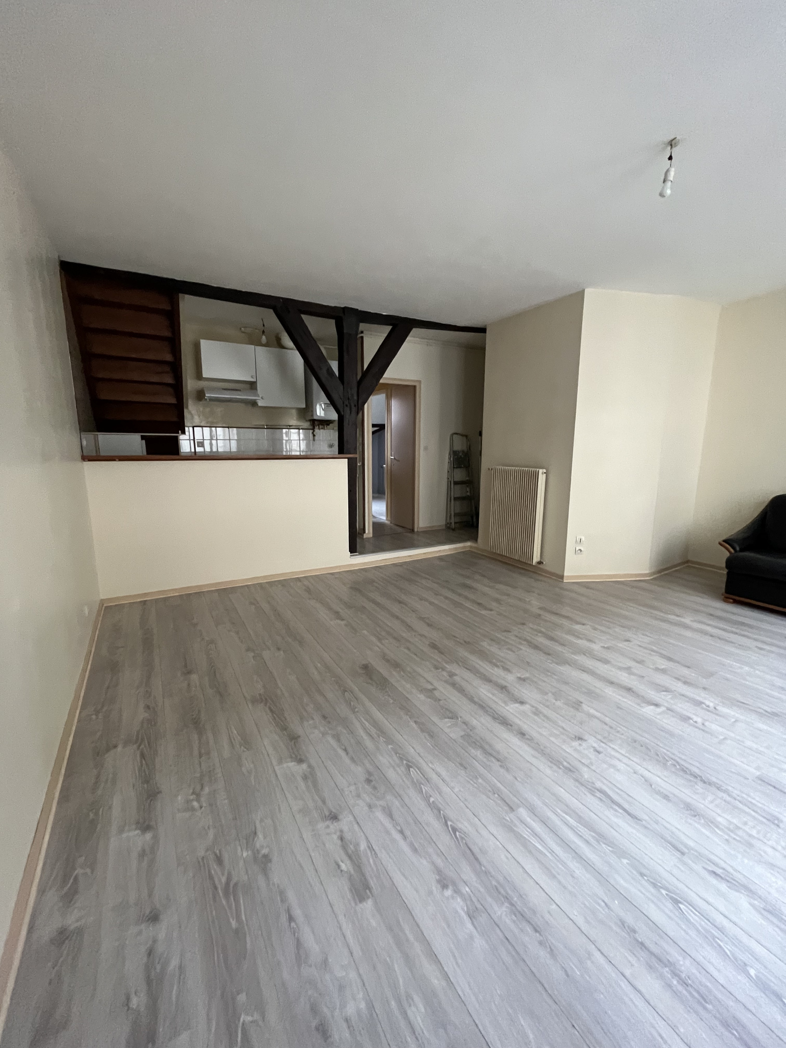 Cet appartement en duplex situé au 2ème étage sans ascenceur dispose d'une entrée, d'un séjour avec cuisine aménagée ouverte, d'un WC, d'une salle d'eau avec douche et d'une chambre au RDC. A l'étage, cet appartement dispose de 2 chambres.