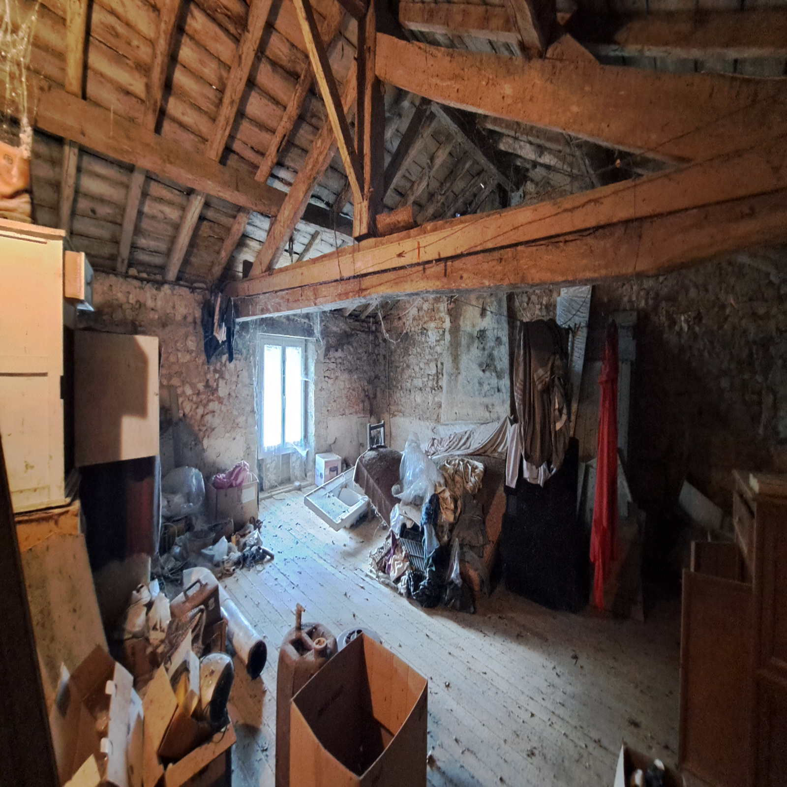Cette maison dispose au RDC d'une entrée, d'un séjour avec cheminée, d'une cuisine ancienne aménagée et équipée, d'un cellier, d'une véranda ancienne, d'une chambre, d'une salle d'eau et d'un WC indépendant. Au 1er étage, cette maison dispose d'une seconde chambre, d'un bureau et d'un grenier de 23 m² aménageable. L'ensemble immobilier dispose également d'un garage de 17 m², d'un hangar ouvert de 90 m² et de 2 dépendances de 64 m² et 43 m². Cette maison est habitable mais demande quelques travaux de rénovation d'assainissement, de toiture, d'électricité, d'isolation, ....