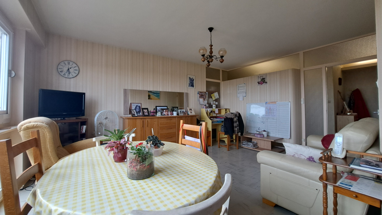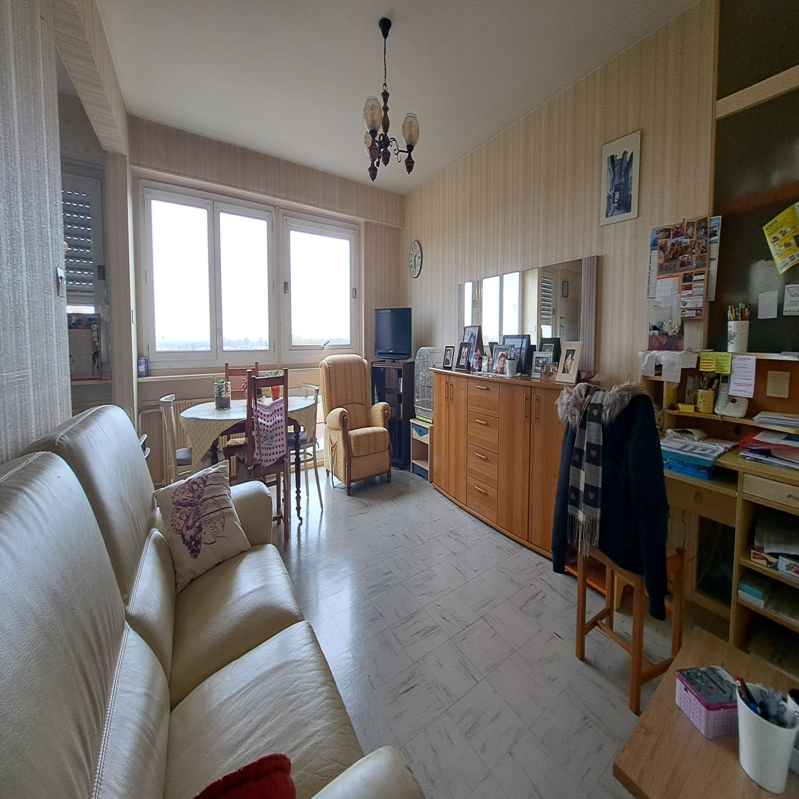 Cet appartement situé au 7ème étage avec accès ascenseur dispose d'une entrée large, d'un séjour lumineux ouvert sur une cuisine aménagée et équipée, de 2 chambres, d'un cellier, d'une salle d'eau ancienne et d'un WC indépendant.