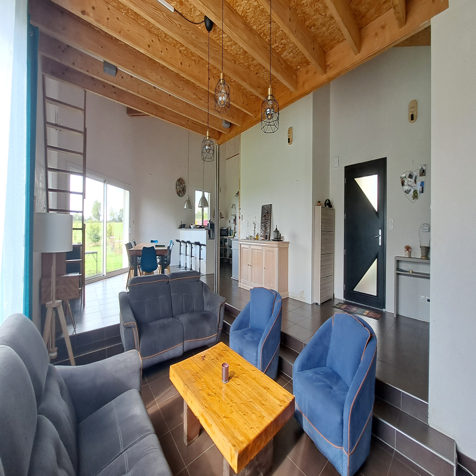 Cette maison de plain-pied dispose d'une entrée, d'un grand séjour avec poêle à pellets et cuisine ouverte, de 3 grandes chambres, d'une salle de bain, d'un WC indépendant et d'un garage au RDC. Au 1er étage, ce bien est composé d'un espace bureau en mezzanine donnant accès à une salle de jeux, à 2 bureaux qu'il est possible de transformer chambres et à une salle d'eau. Ce bien est situé sur un grand terrain de 9501 m² avec une vue dégagée sur la campagne. Assainissement individuel conforme, Toiture conforme de 2009, Menuiseries PVC double vitrage, Chauffage par pompe à chaleur sur plancher chauffant et poêle à pellets, Maison très bien isolée.