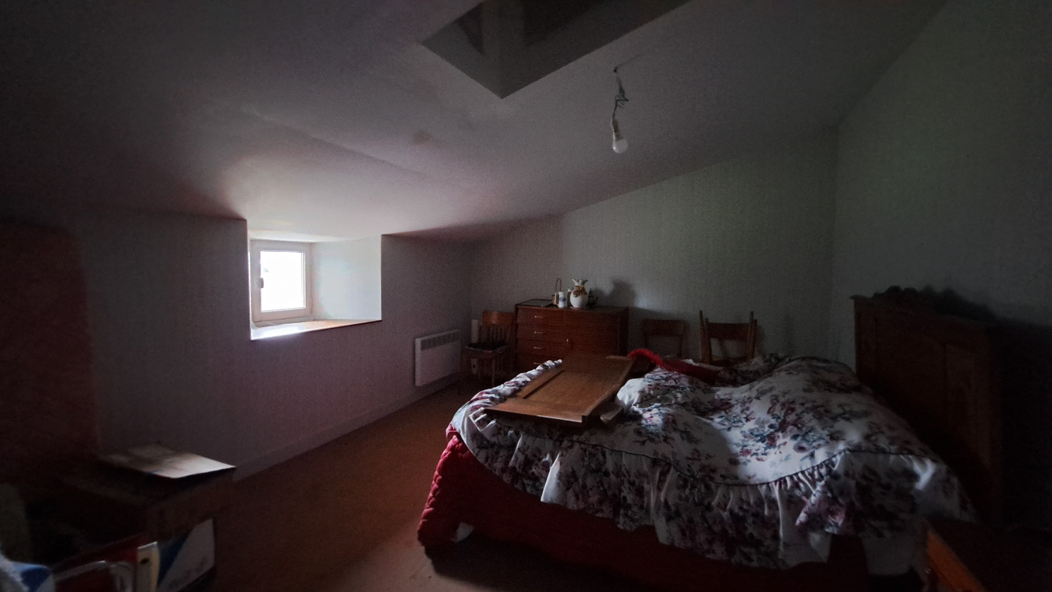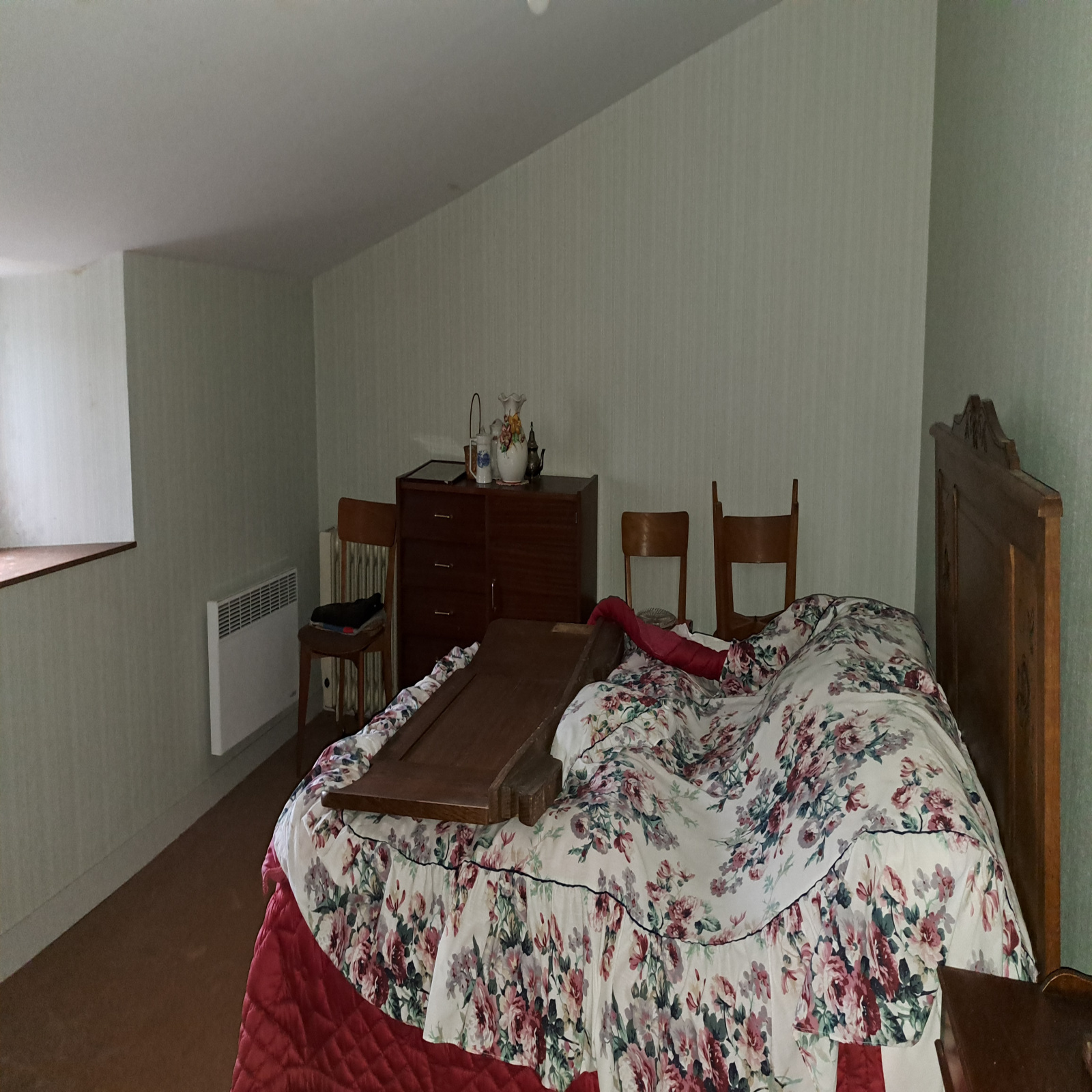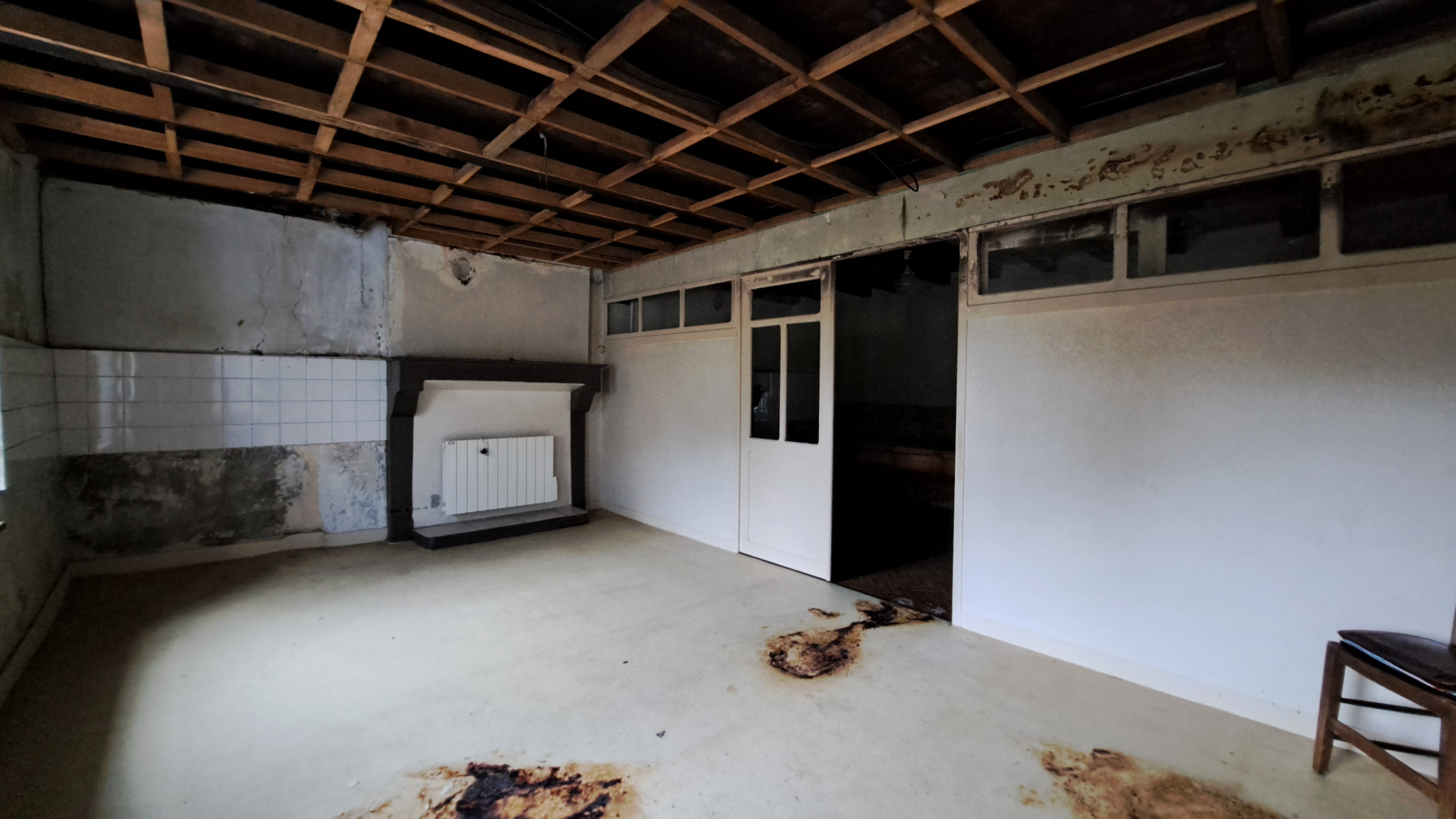 Cette maison à rénover dispose au RDC d'une entrée sur un séjour avec cuisine ouverte, d'une chambre, d'une salle d'eau avec douche à l'italienne et d'un WC indépendant. Au 1er étage, cette maison dispose d'une seconde chambre et d'un grenier aménageable en troisième chambre. La maison ne dispose pas de système de chauffage et de production d'eau chaude. A l'extérieur, l'ensemble comprend un local rangement et une grage en bon état de 74 m². Assainissement à prévoir, toiture en bon état, menuiseries à remplacer, système de chauffage et d'eau chaude à créer.