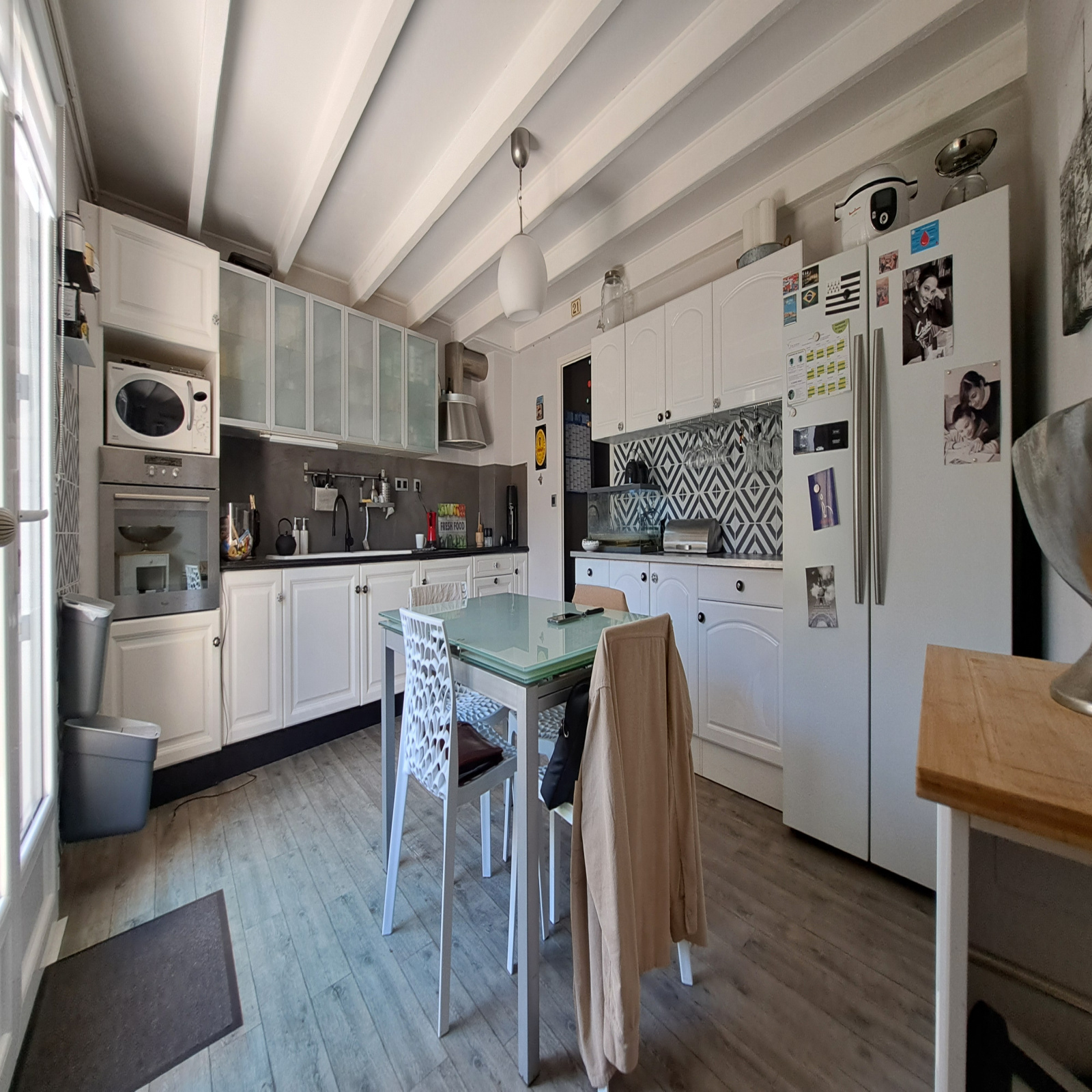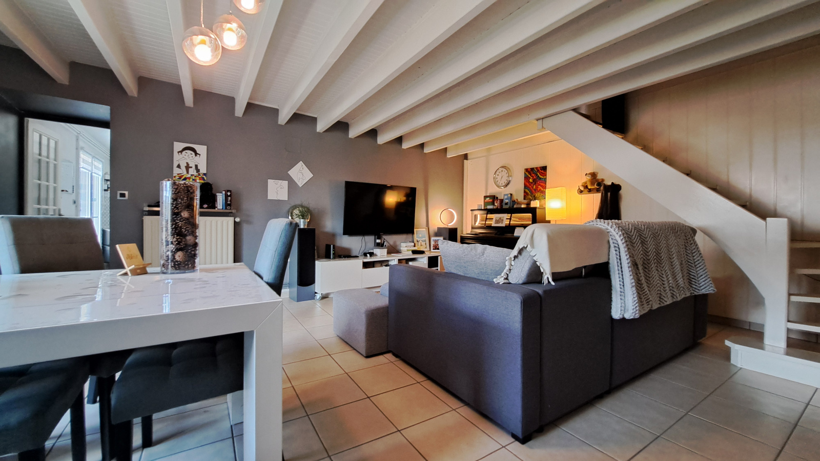 Cette maison dispose au RDC d'une entrée sur sur un séjour avec poêle à pellets, d'une cuisine aménagée et équipée, d'une salle de bain, d'un WC et d'un garage. Au 1er étage, cette maison dispose d'un pallier desservant 5 chambres, un dressing, une salle d'eau avec douche et un WC indépendant. Côté extérieur, cette maison est composée d'une terrasse et d'un jardin non-attenant. La maison est en parfait état. La toiture est en bon état, menuiseries en PVC double vitrage, chaudière bio-fioul récente.