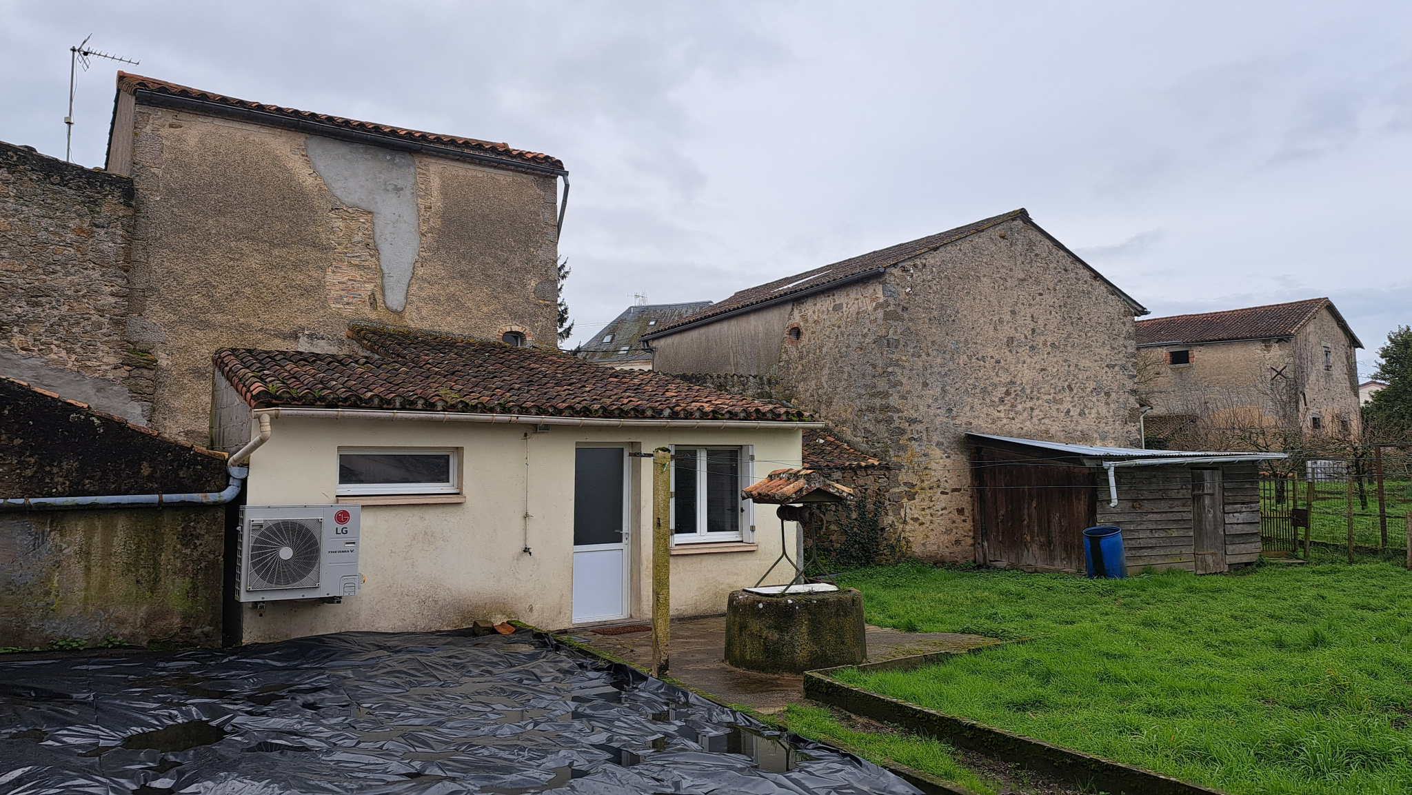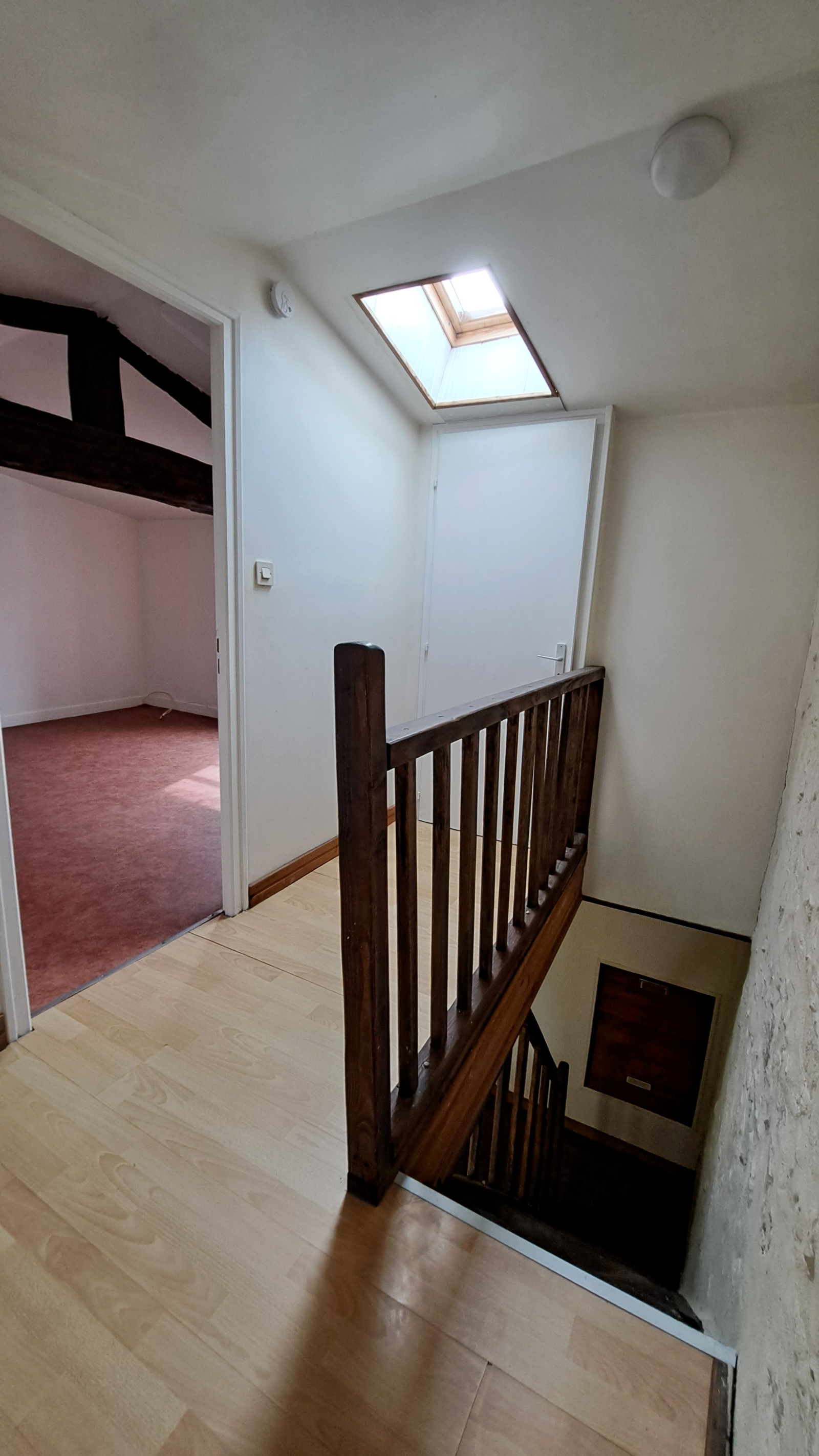 Cette maison dispose au RDC d'un séjour, d'une cuisine non-aménagée, d'un cellier avec système de chauffage, d'une salle d'eau et d'un WC. Au 1er étage, cette maison comprend une 1ère chambre. Au 2ème étage, cette maison compren une 2ème chambre et un WC indépendant. La maison dispose également d'un garage ouvert et d'un terrain clos. La maison est louée pour un loyer de 500 € mensuel depuis avril 2024. Toiture en bon état, Menuiserie PVC double vitrage, Chauffage central via pompe à chaleur.