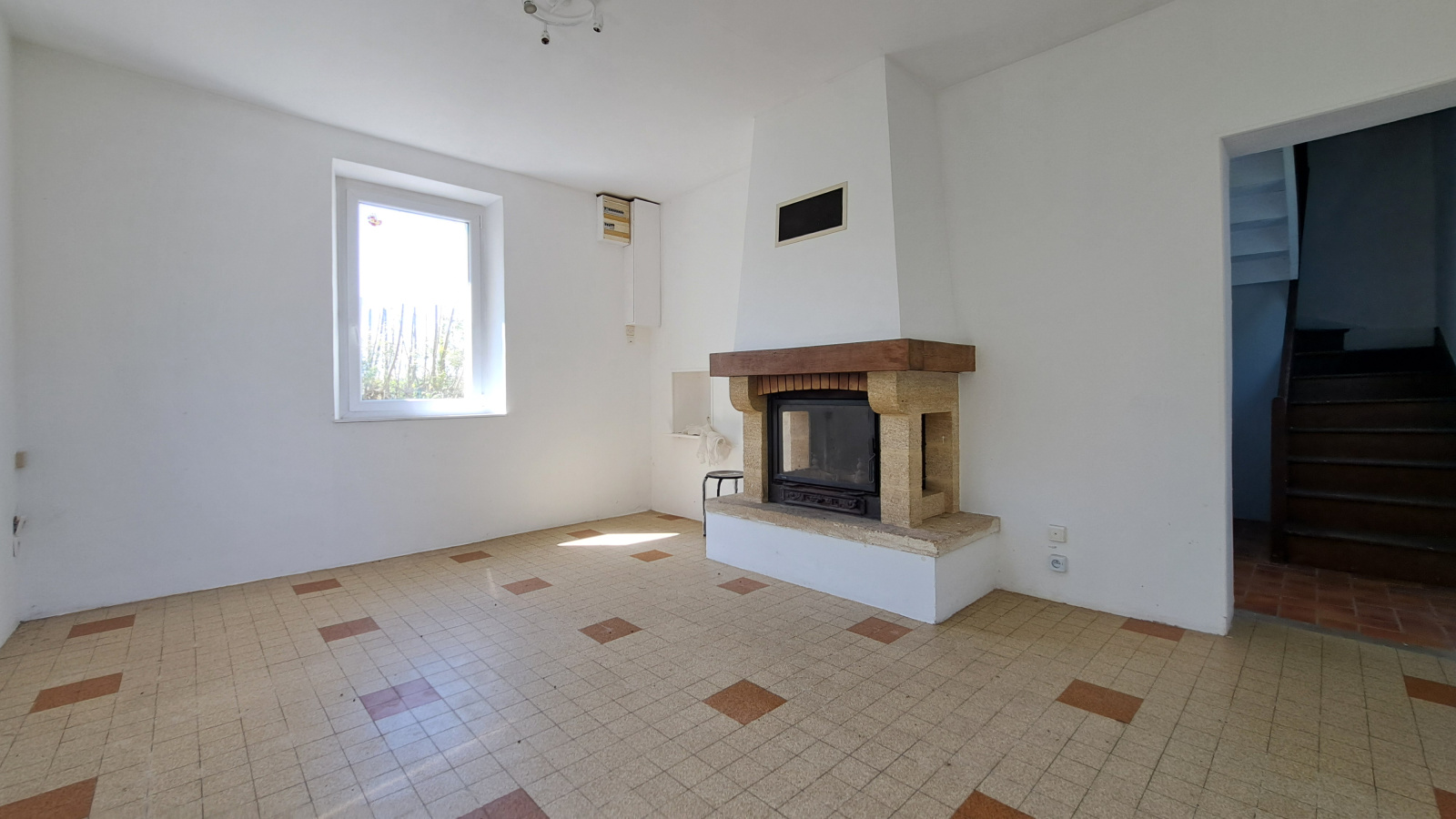 Cette maison dispose d'une entrée sur un séjour avec cheminée, d'une cuisine aménagée et équipée, d'un cellier et d'un salle de bain avec baignoire, lavabo et WC au RDC. Au 1er étage, le pallier dessert les 2 chambres. Le bien dispose également d'une dépendance partiellement aménagée d'un séjour avec cuisine ouverte, d'une chambre, d'une salle de bain et d'un cellier. Cette dépendance devra être remise en état ou peut-être modifiée en atelier et garage. Assainissement individuel non-conforme, Menuiseries en PVC double vitrage.