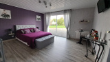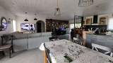 Cette maison dispose d’une entrée sur un séjour lumineux avec cuisine aménagée et équipée ouverte, de 3 chambres, d’un bureau, d’un cellier, d’une lingerie, d’une salle d’eau, de 2 WC, d’une salle avec jacuzzi et de 2 garages. L’ensemble dispose également d’un appentis et d’une cuisine d’été. Assainissement individuel non-conforme, Toiture en tuiles, Menuiseries PVC double vitrage, Chauffage électrique et poêle à pellets.